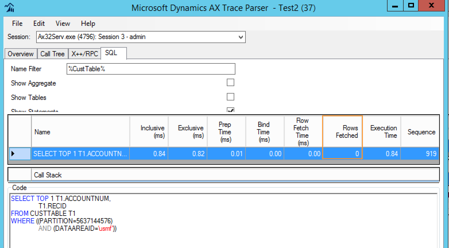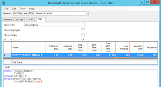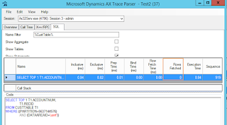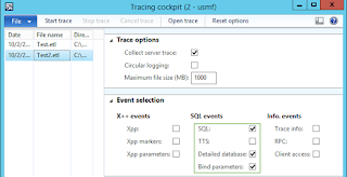 While I was working on the previous post, I noticed a strange difference between data presented in Microsoft Dynamics AX Trace Parser and SQL Server Profiler. Let's run a couple of tests.